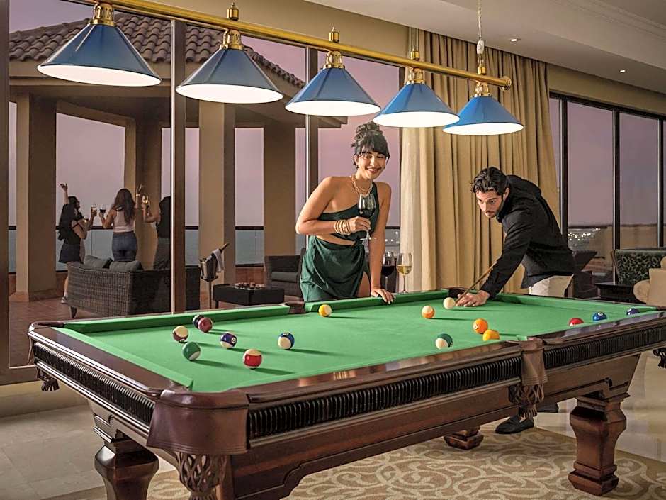 Vier gastronomische Einrichtungen vor Ort bieten eine kulinarische Weltreise direkt am Ufer. Das Al Liwan Restaurant serviert internationale Gerichte in unterschiedlichen Ambientes – von familienfreundlich über traditionell und modern bis hin zu romantisch. Das Zaitouna House verbindet mediterrane Aromen mit einer warmen, traditionellen Atmosphäre; das Al Forno Restaurant bringt italienische Klassiker an den Strand; Turtle Beach bietet internationale Küche in einem eher traditionellen und romantischen Ambiente. Direkter Strandzugang mit einem privaten Strandbereich (kostenlos) erleichtert Abendessen bei Sonnenuntergang, und der Sand ist nach dem Essen nur wenige Schritte entfernt.